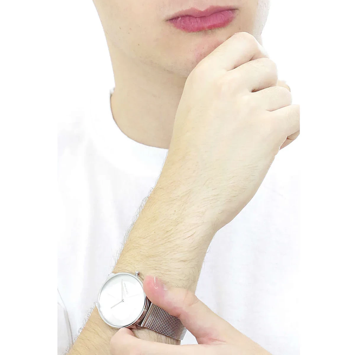 • Iconic style. Slim, structural case design and two-layer dial accented with the Calvin Klein acronym. Available on a mesh bracelet