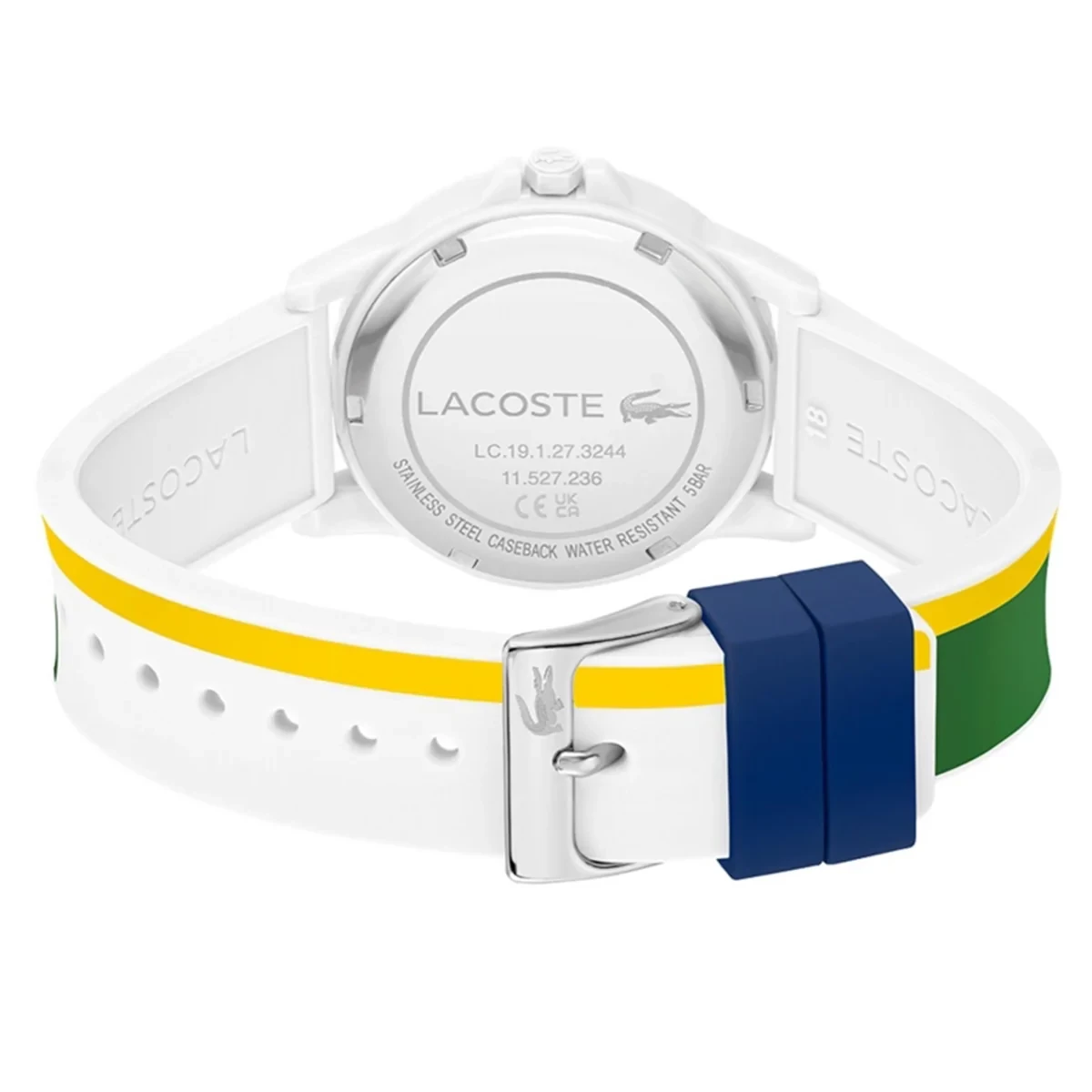 • Lacoste Rider 2030044 is a great Children watch from Rider collection. Case material is Plastic/Resin, which stands for a high quality of the item while the dial colour is White. 50 meters water resistance will protect the watch and allows it to be submerged in water for periods, so can be used for swimming and fishing. It is not recommended for high impact water sports.