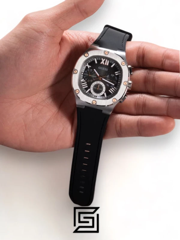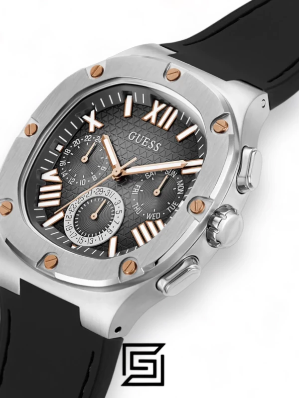 GUESS GW0571G1 square sunglasses with black silicone band, stainless steel case and mineral glass lens. Stylish and durable, with a classic look.